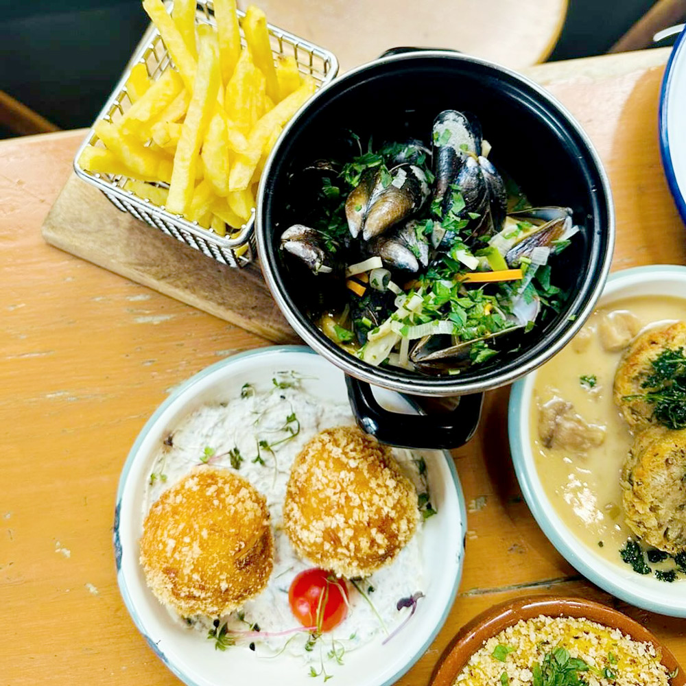 Den Tisch stellen wir euch mit leckerem Speisen einfach voll, ein Dutzend Kleinigkeiten zum Teilen, Klassiker und festliche neue Interpretationen. Dazu leckeres Brot, geiles Olivenöl und französische Salzbutter. Auch vegetarisch auf Wunsch.